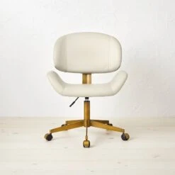 Mahonia Faux Leather Office Chair Cream/Aged Brass – Opalhouseâ„¢ Designed With Jungalowâ„¢