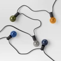 - Designed with black wire and multicolor round bulbs