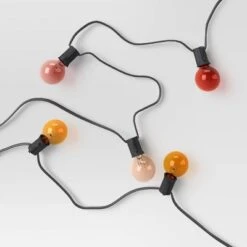 Create a warm and inviting atmosphere anywhere around your home with these 20-Count Incandescent Glass G40 Bulbs from Room Essentialsâ˘. Joined together with a black wire, this stylish set of string lights include multiple rounded bulbs in varying colors for a warm, cheery look. The bulbs glow with constant lighting to help create a glowing space on your patio, or anywhere you like to entertain indoors or out. String them between several trees or posts in your outdoor space, or hang them along the wall indoors for a decorative look that instantly adds to your party decor.