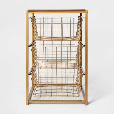 Organize your clothes and shoes with ease with this 3-Drawer Organizer from Brightroom™. This metal closet organizer brings practical storage to your space. It features a vertical design with three spacious slide-out drawers to provide ample space for universal storage, and the wood top creates attractive space for display. The wire frame construction provides ventilation and the color selections can easily coordinate with any décor aesthetic.
