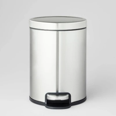 This little 5L Round Color Step Trash Can from Brightroom™ is a convenient way to complete any kitchen, office area or home workspace. It fits over a gallon of waste, and its quiet-closing lid lets you toss all the trash you need without disturbing co-workers, roommates or family members. This small stainless steel bin fits neatly in a small cabinet or under a desk. It’s built with a pedal-operated lid so you can quickly and easily throw out any garbage, and features a removable inner liner for easy emptying. The fingerprint-resistant finish gives it a clean look that coordinates easily with a variety of room designs and color palettes.