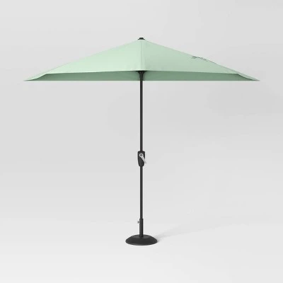 This 7.8-Foot x 8.8-Foot Half-Circle Patio Umbrella from Room Essentials⢠will add style and cozy shade to your patio setup. Made with fade-resistant fabric in a solid hue, it makes an easy pairing with any patio decor scheme. The half-circle canopy is perfect for placement alongside a wall or tall hedge, and it’s supported by a steel frame and is compatible with centered pole umbrella bases (sold separately). Convenient to use in narrower outdoor spaces, the crank lift lets you easily adjust this umbrella to keep everybody in the shade.