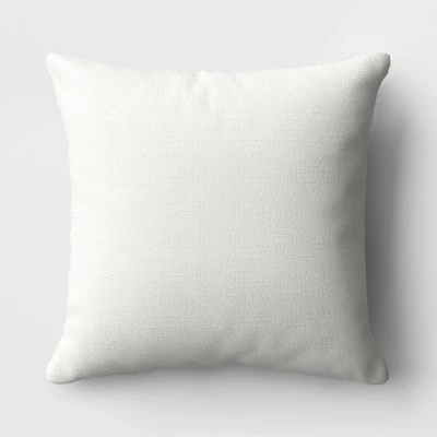 Elevate your lounge or living room setting with this Cabana Striped Woven Cotton Square Throw Pillow from Room Essentials™. This square throw pillow features a solid-color back and a colorblock print of cabana stripes for a modern look. The soft fill insert offers cushioned comfort, and the sewn seam closure gives it a clean, polished look. You can place it on your couch, armchair or any other space for versatile styling.