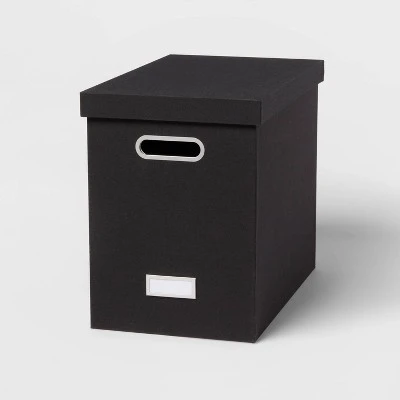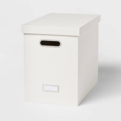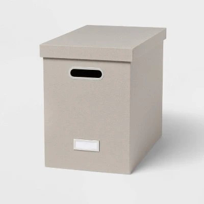 Help create a neat and organized workspace with this Canvas Hanging File Box Organizer with Lid from Brightroom™. Designed in a cube silhouette, this file storage box helps you keep different hanging files neatly stashed. It features a removable lid for stacking multiple file boxes, while the cutout handles on each side allows for easy lifting and transporting from your shelf to your desk. Best of all, it features a tag on the front for easy sorting and identifying different files. Showcasing a canvas construction, it adds a sleek style to your home or office decor.
