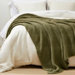 - Chunky bed blanket makes a great bed layer or standalone piece