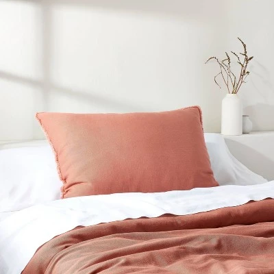 When you’ve designed the perfect look and feel for your home’s restful retreat, provide a beautiful and functional finishing touch with this Heavyweight Linen Blend King Euro Throw Pillow from Casaluna™. This large decorative throw pillow comes in a variety of soothing earth tone colors to complement the look and feel you’ve designed for your bedroom, and the large rectangular shape is great for providing support while you lean and read a book or catch up on your favorite shows. The heavyweight linen blend cover is designed with a zipper closure for easy removal or replacing of the pillow insert, and it features an allover textured look with a fringe trim for a stylish contrasting finish.