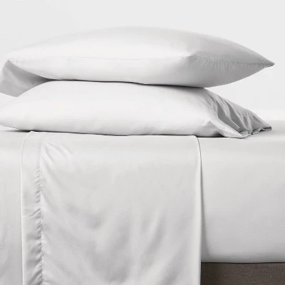 Transform your bedroom into a cozy resting retreat with this Solid Microfiber Sheet Set from Room Essentials™. Boasting a microfiber construction and brushed for softness, this sheet set helps keep you comfy in bed. This sheet set includes one fitted sheet, one flat sheet and pillowcase(s), each featuring a solid hue to easily blend with a variety of decor styles. Simply coordinate them with the comforter of your choice and add some contrasting printed pillows and shams to bring your bedroom come alive with colors.