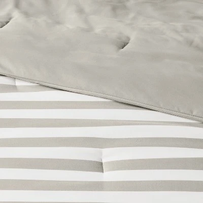 Give your bedscape an effortless makeover with this stylish Reversible Microfiber Stripe Comforter from Room Essentials™. Made from 180 thread-count microfiber that feels soft to the touch, this reversible solid comforter provides luxurious comfort as you curl up with your favorite book or sleep through the night. The solid comforter features brushed stripe detailing on a box quilting backdrop to add texture and dimension to your space, while the reversible design instantly changes the look of your room. Simply mix and match with sheets and decorative pillows of your choice to create a refreshing aesthetic in your bedroom.