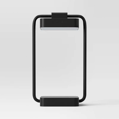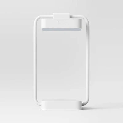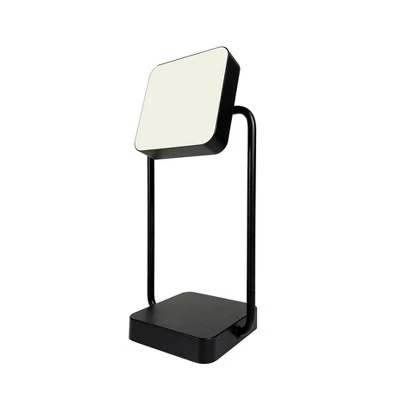 Add a simple lighting solution to your home with this Panel Task Lamp (Includes LED Light Bulb) from Room Essentialsâ˘. This task lamp features a square shade along with a rectangle base for a sleek, unique look. Great to cast light on your space to help you work or study in comfort, this solid-color task lamp lights up easily with base push button and comes with one-way light setting.