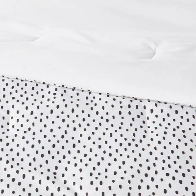 Snooze away the night in luxury and comfort with the Reversible Microfiber Dot Comforter from Room Essentials™. Boasting a microfiber construction that feels soft against your skin, this decorative comforter is generously filled to ensure you stay cozy and comfy as you hit the lights and delve into the world of your magical dreams. Featuring a subtle tufted design and decked out with allover black dots on a white background that match the white reverse, giving you more options to dress up your bed, this dotted microfiber comforter is easy to match with a variety of bedding pieces to highlight your artistic taste. Simply coordinate it with a solid white sheet and pillows to fill your bedroom with a chic artisan vibe, or add bright shams and pillows in colorful hues and printed percale sheets to show off your imagination.