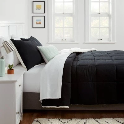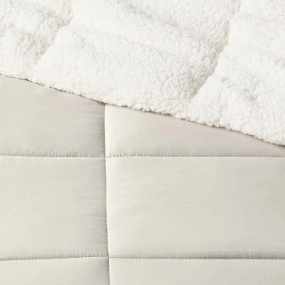 Escape to your dreamland in cozy comfort with the Sherpa Washed Microfiber Comforter from Room Essentials™. Boasting a super-soft, washed quilted fabric on one side and plush sherpa on the other side, this microfiber comforter feels soft against your skin and helps keep you cozy all night. Featuring a dual-hue design with white sherpa at the reverse and a solid quilted front, this sherpa comforter instantly enlivens your sleeping space. Simply coordinate it with a matching sham, contrasting sheets and fluffy pillows to transform any bedroom in your home into a cozy and colorful relaxing haven.