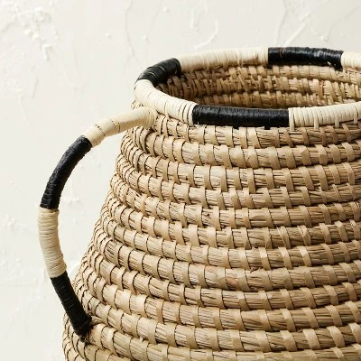 This Small Basket with Woven Handle from Opalhouse™ designed with Jungalow™ adds rustic vibes to your home. The decorative basket container is made of woven seagrass cords in natural brown, which makes it an easy addition to any room. The contrasting rim and side handles with a striped pattern in black and beige complete the design with added appeal.