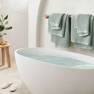 Gift your bath collection a touch of serene style and luxurious comfort by adding the Decorative Waffle Towel from Casalunaâ„¢. Available in neutral and soothing colors, it’s easy to incorporate this textured waffle towel into a range of bath areas to suit your decor. The delicate waffle design creates a spa-inspired aesthetic to keep your bath space warm and welcoming, and it’s made from 100% cotton with a washed finish for natural softness and long-lasting durability. This towel is thoughtfully designed to make your home an oasis of comfort and calm — combine it with other Casaluna bath items to curate a beautiful space you and guests alike will love. Due to the delicate nature of this towel, it may shrink slightly during washing and drying.